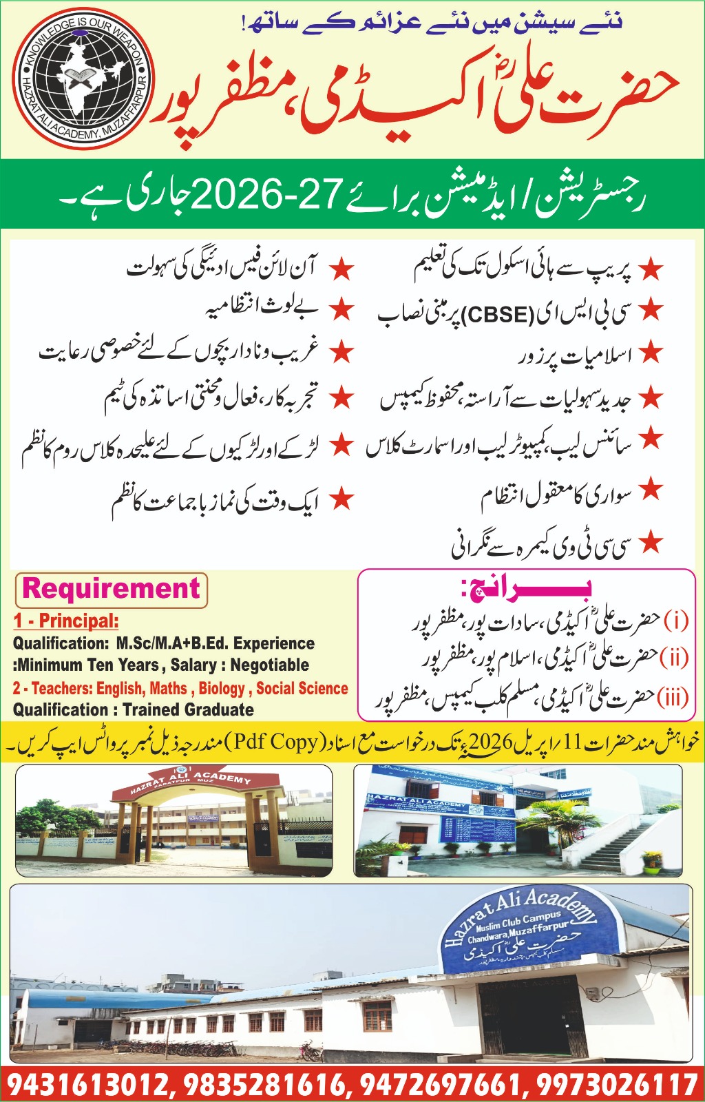 At Hazrat Ali Academy, we recognize the vital of imparting an educational experience that is the mirror of ancient Indian Gurukul and modern education which prepares children for global citizenship. We are a school with Indian ethics, tradition and Indian culture: a school that reveals India and its achievement. We believe that a curriculum of excellence with a global dimension is central to the education of children to face the challenges of the 21st century with confidence and strength of character. The school’s vision is to provide a learning environment that encourages children to bring out the best in themselves and which supports their holistic development, through the discovery the joy learning, awakening and illuminating their intellect in multi dimensional ways, and installing ineradicable values in themselves.